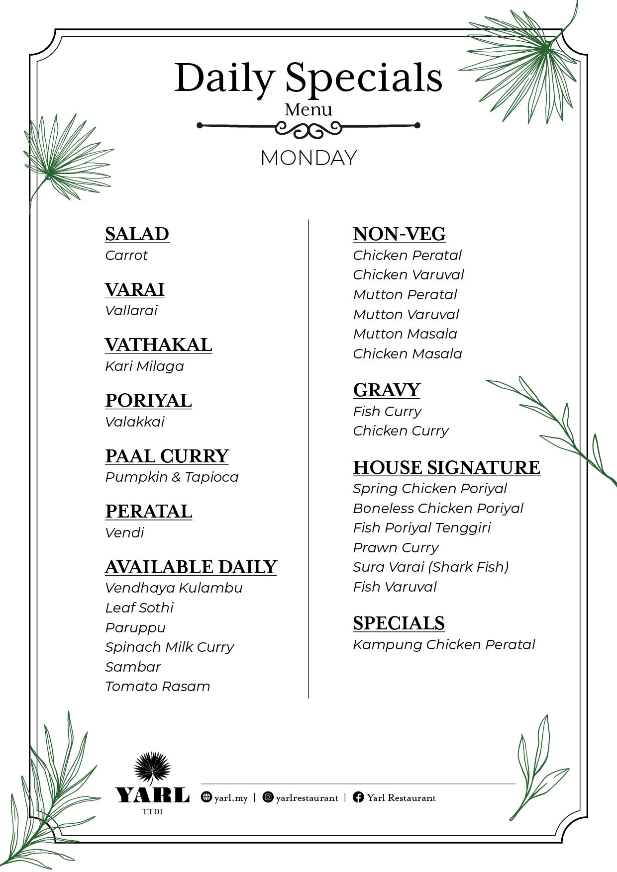 Yarl Lunch Specials